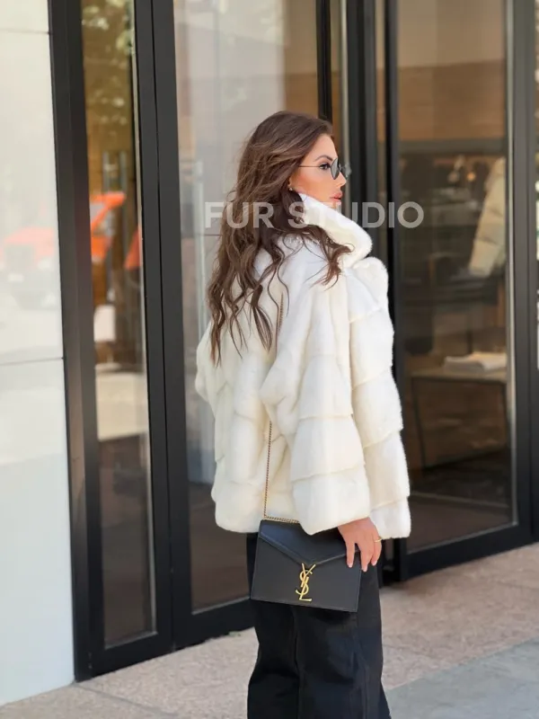 Модель прекрасно сочетается с любым гардеробом: от базового до вечерних туалетов. Прямой крой позволит скрыть недостатки фигуры. Добавьте статусную сумочку в образ, и вы будете выглядеть бесподобно. Приобрести норковое изделие – выгодное вложение в себя, качество верхней одежды будет радовать долгие годы. Купить белую короткую норковую шубу могут женщины, которые любят выглядеть дорого, но со вкусом.
