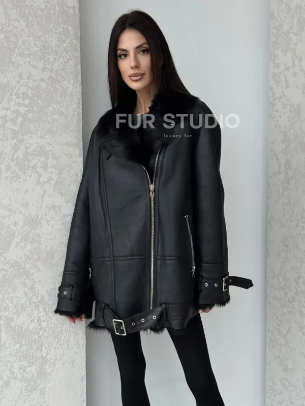Черная дубленка - авиатор на тоскане 100757