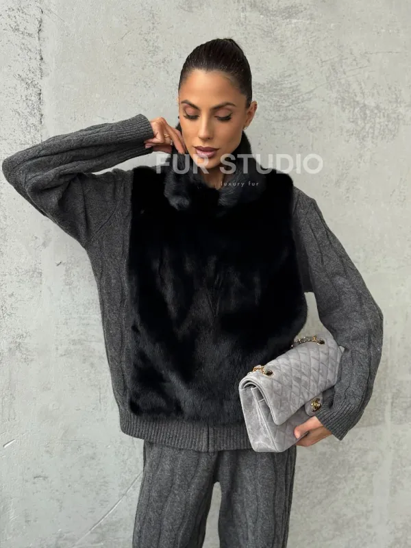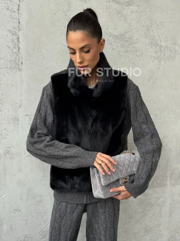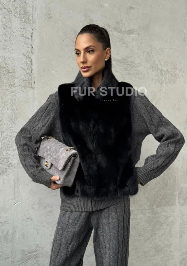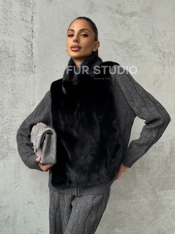 Черная манишка из меха норки 102424
