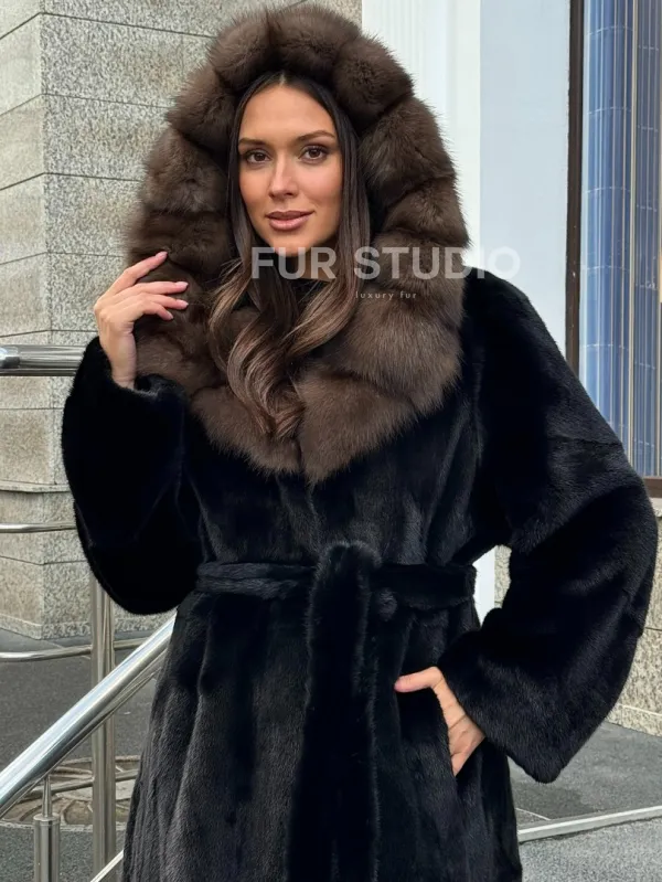 Черная норковая шуба с капюшоном куница доступна для покупки в нашем шоуруме Furs Studio в . У нас так же есть доставка во все города России. Добавьте немного роскоши в свой гардероб с этой шубой, которая будет служить вам многие годы.