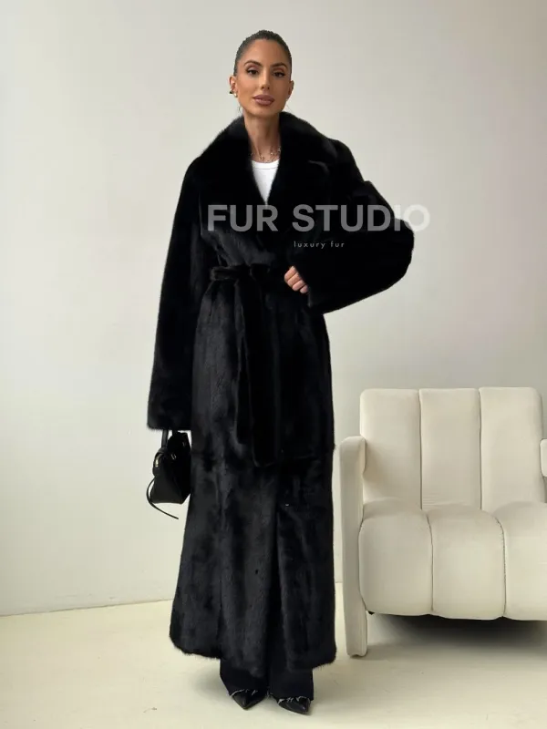 Черная норковая шуба с поясом доступна для покупки в нашем шоуруме Furs Studio в . У нас так же есть доставка во все города России. Добавьте немного роскоши в свой гардероб с этой шубой, которая будет служить вам многие годы.