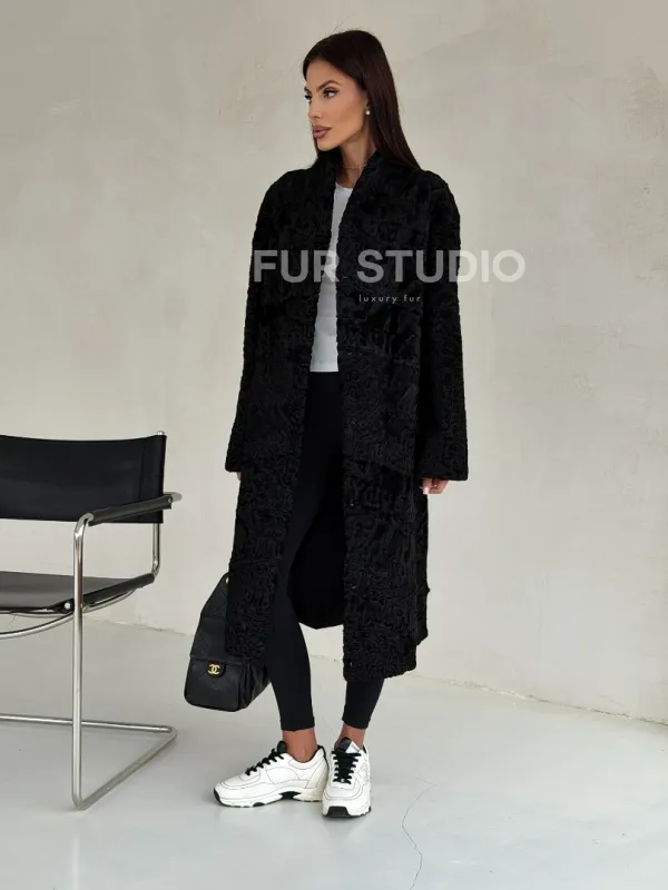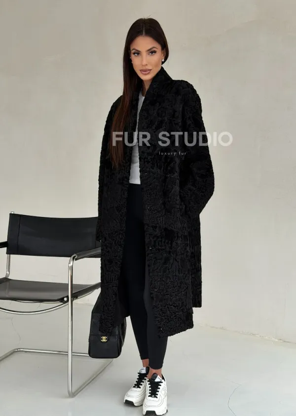 Черная шуба из каракуля доступна для покупки в нашем шоуруме Furs Studio в . У нас так же есть доставка во все города России. Добавьте немного роскоши в свой гардероб с этой шубой, которая будет служить вам многие годы.