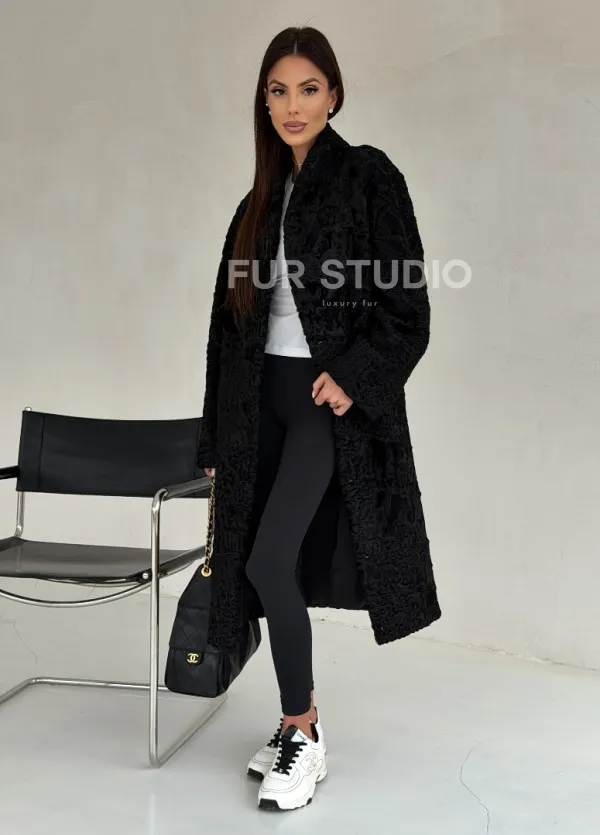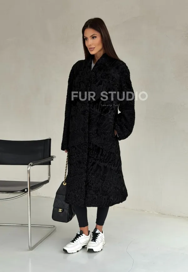 Черная шуба из каракуля 102699