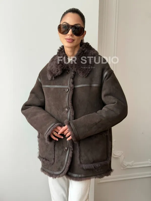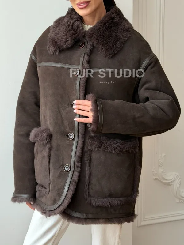 Двухсторонняя дубленка - мех тиградо 102734