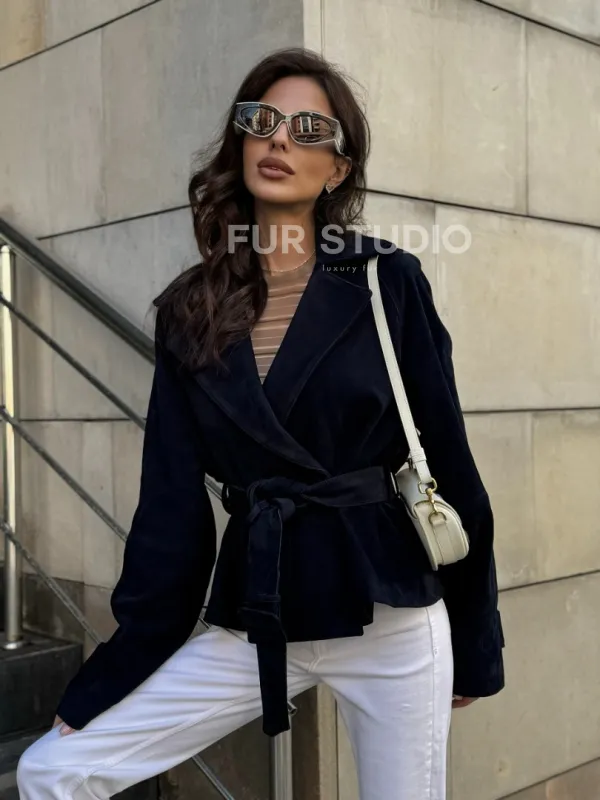 Модная куртка из замшевой кожи доступна для покупки в нашем шоуруме Furs Studio в , где также предоставляется удобная доставка во все города России.