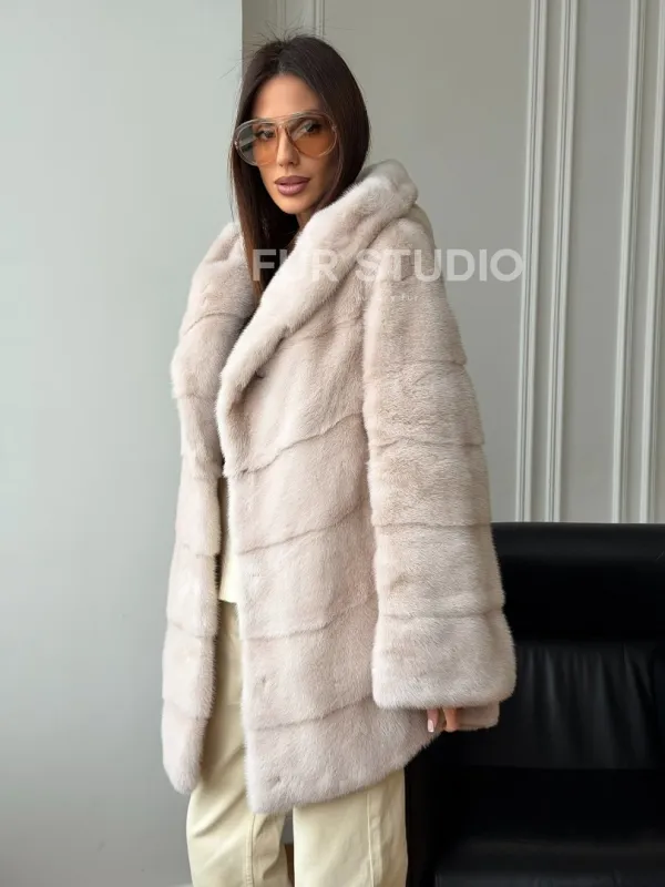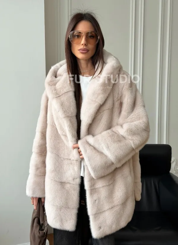 Норковая шуба с капюшоном - " рубашечный крой " 102579