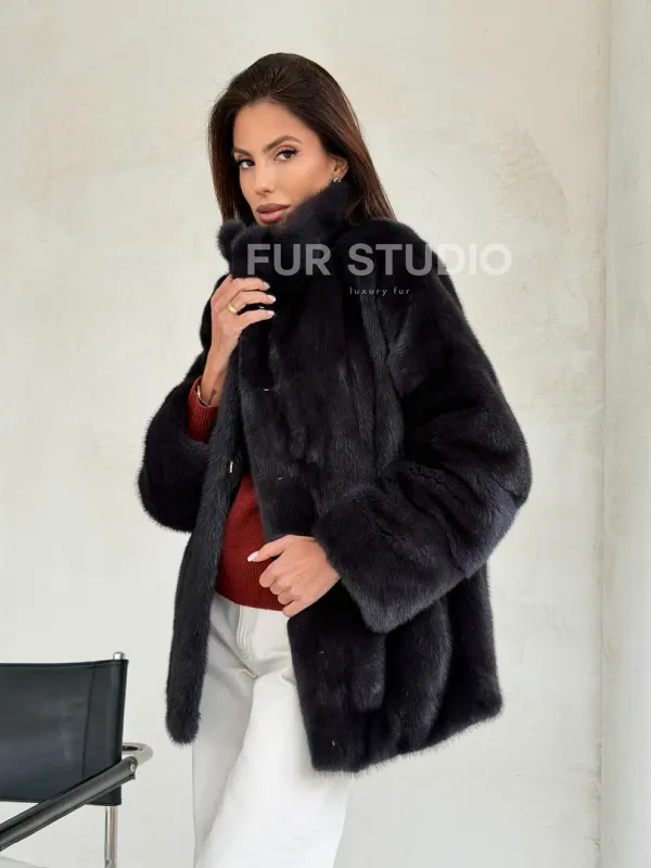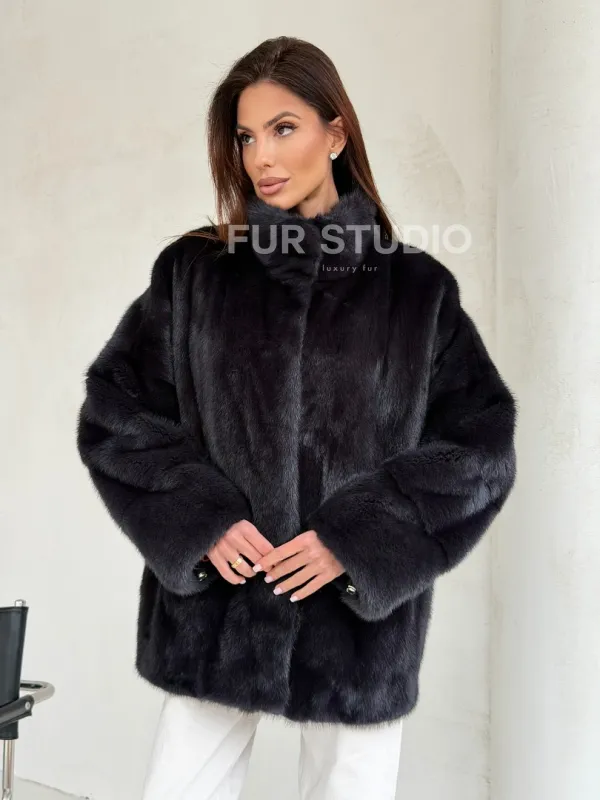 Норковый полушубок графит - стойка воротник 102702