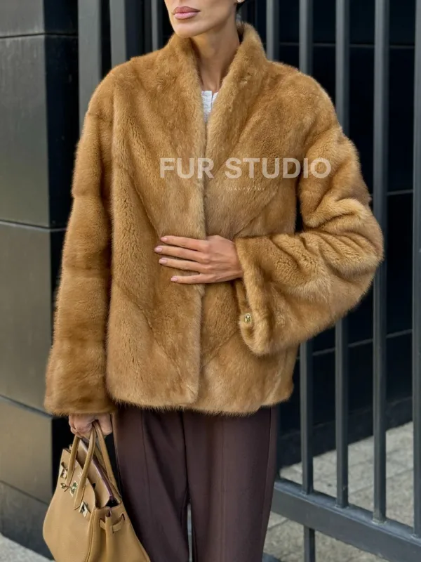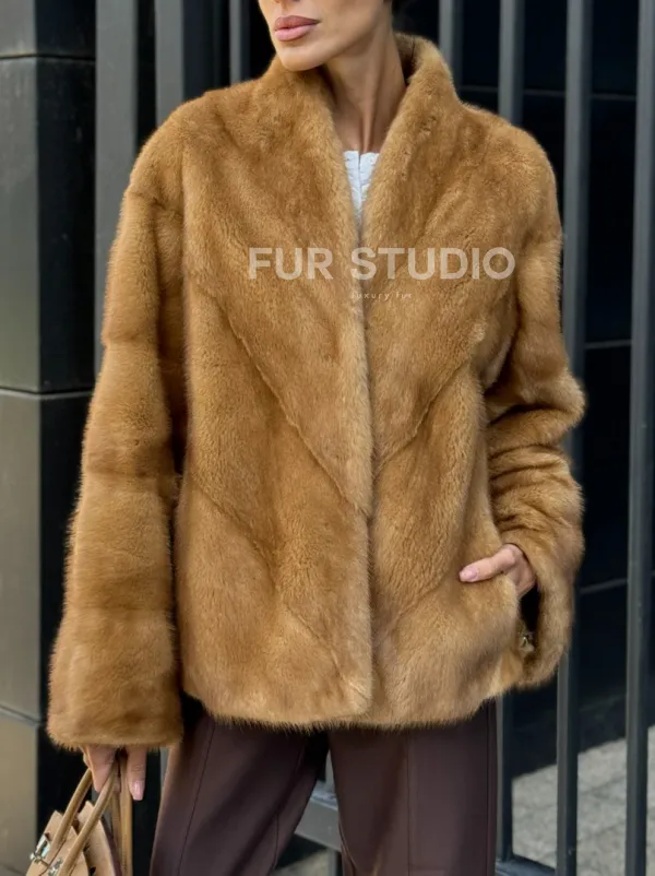 Норковый жакет Gold воротник V-образный 102229