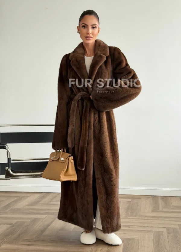 Прямая шуба из норки с поясом доступна для покупки в нашем шоуруме Furs Studio в . У нас так же есть доставка во все города России. Добавьте немного роскоши в свой гардероб с этой шубой, которая будет служить вам многие годы.