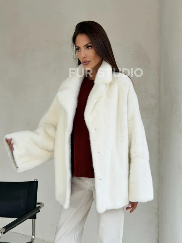 Шуба автоледи из белой норки NAFA MINK - роспуск 101004