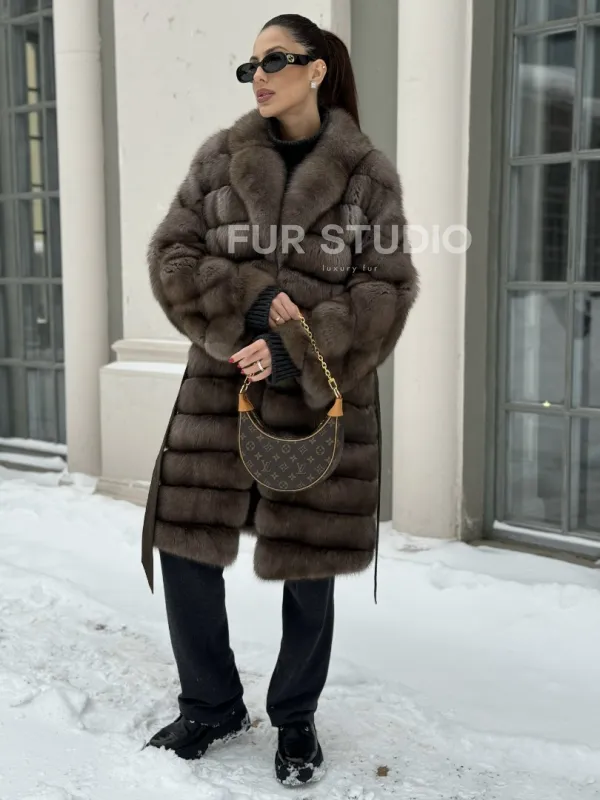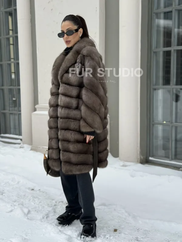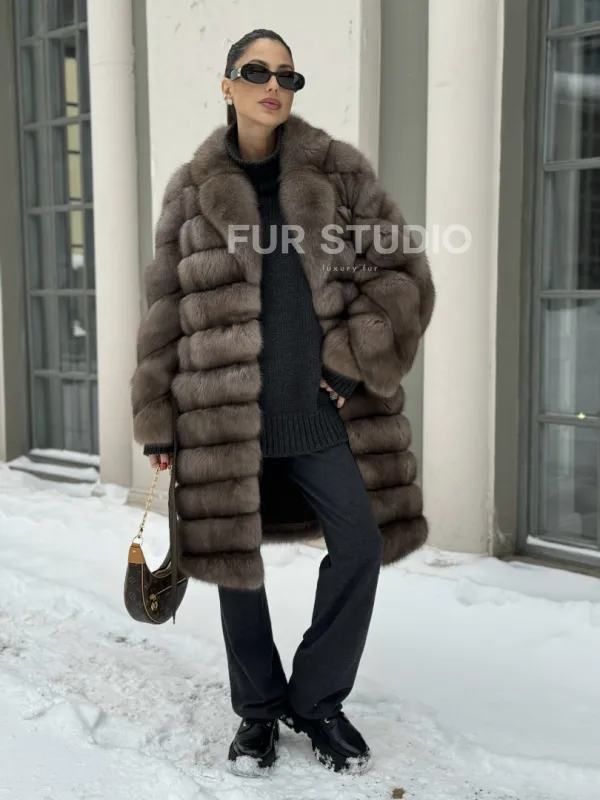 Примерять и купить шубу миди из натурального меха соболя в цвете тортор вы можете в нашем шоуруме студии меха Fur Studio в Москве или у себя дома. Для дистанционного заказа понадобятся мерки, по которым шубу подгонят под особенности фигуры.