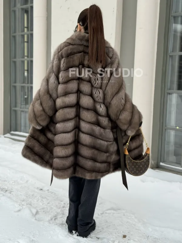 Шуба из меха соболя цвет Тортор седина 1/2 100504