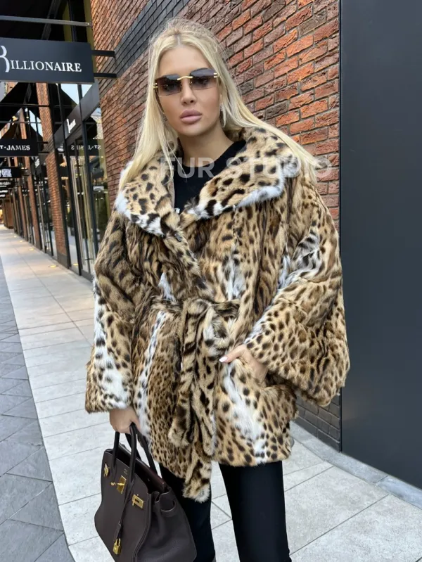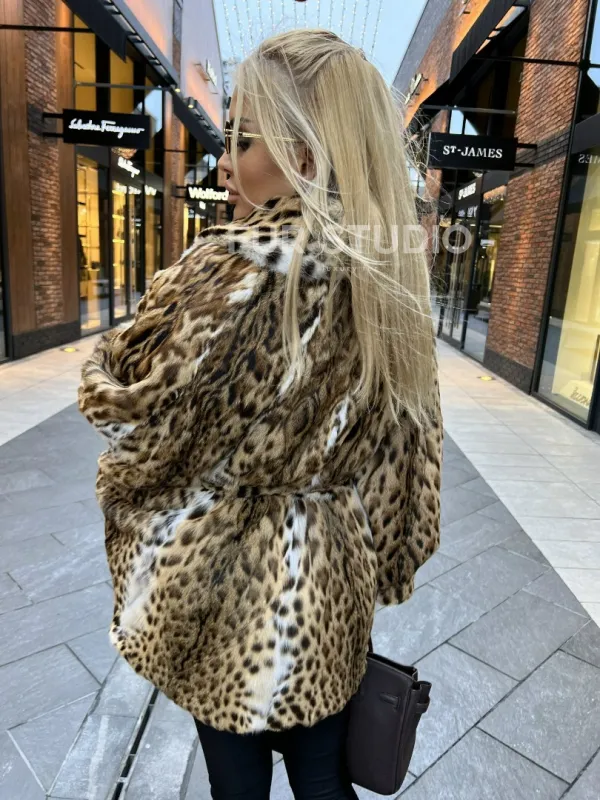 Шуба из оцелота под леопард модель «Летучая мышь» 100095