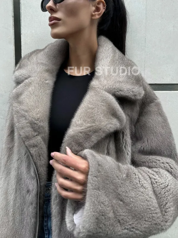 Мех данной шубы аукционная норка, цвет серый. Предлагается в размерах от 42 до 50. Длина модели 65-70 см, что выгодно подчеркивает фигуру девушек. Эта модель идеально подойдет для девушек и женщин, предпочитающих роскошные натуральные меха.