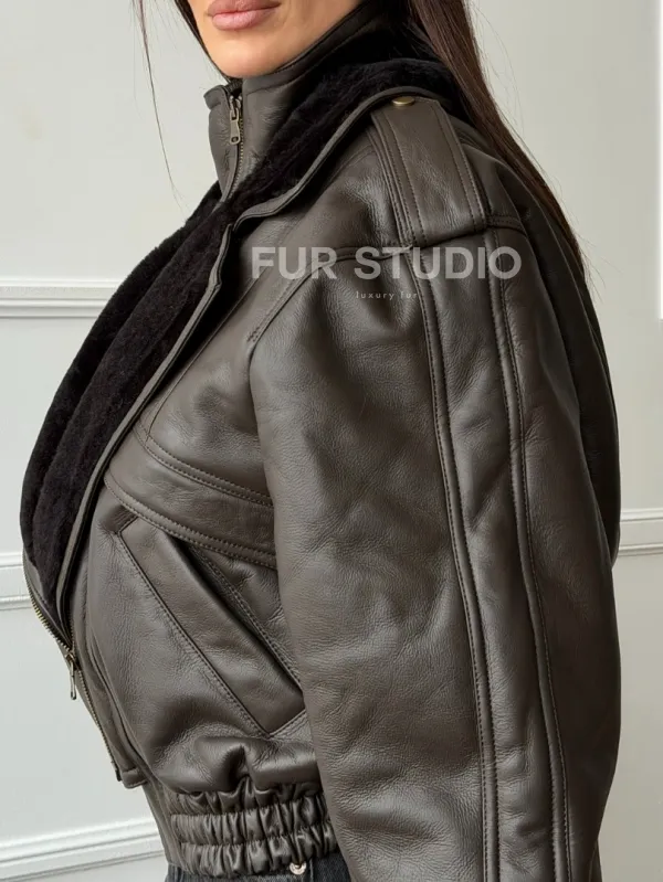 Стильная куртка - дубленка из овчины. Модель предлагается в размерах от 42 до 48. Оптимальная длина моделей 55-60 см подчеркивает линии вашей фигуры. Эта дубленка станет неотъемлемой частью гардероба для тех, кто предпочитает роскошь и утонченность натуральной кожи.