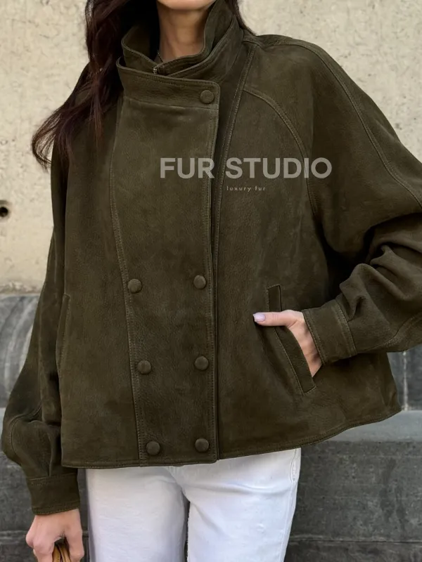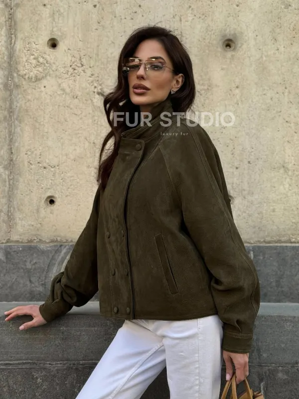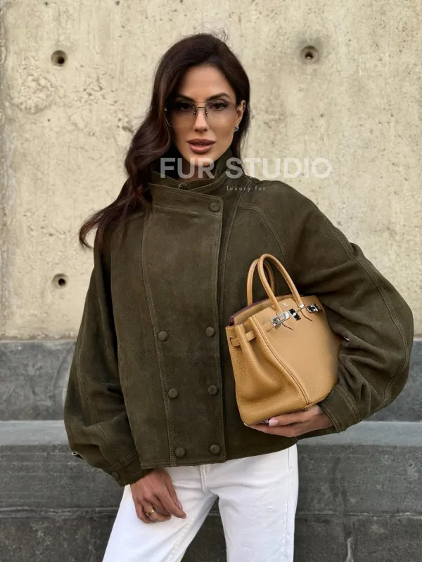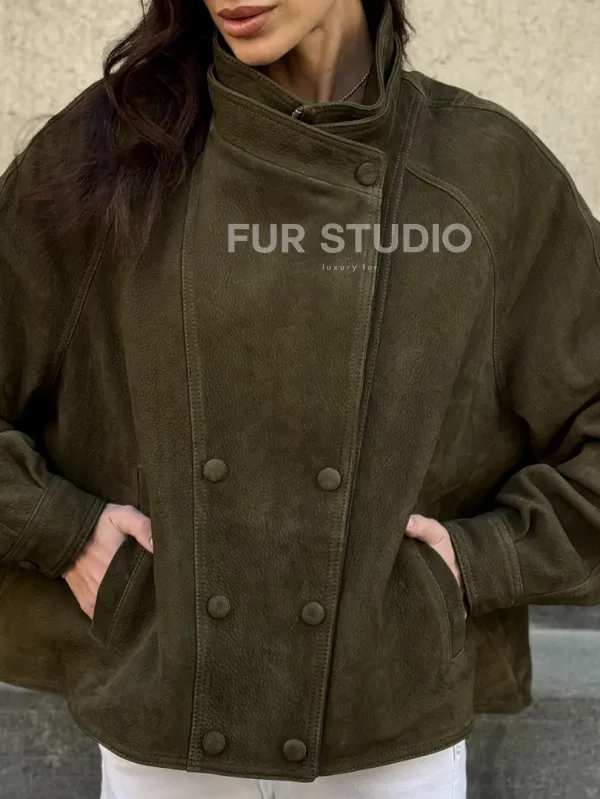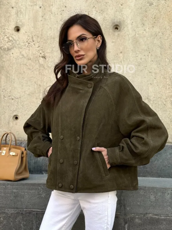 Восхититесь элегантностью и несравненным комфортом с нашей эксклюзивной коллекцией кожаных изделий. Изготовленная из первоклассной натуральной кожи, Женский замшевый блейзер - стойка воротник не только согреет вас в прохладные дни, но и подчеркнет ваш изысканный вкус. Уникальный дизайн и высокое качество делают наши представленные образцы идеальным выбором для утончённых образов.