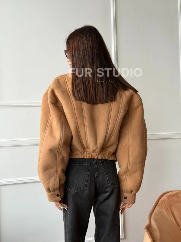 Зимняя женская дубленка - бомбер 102754